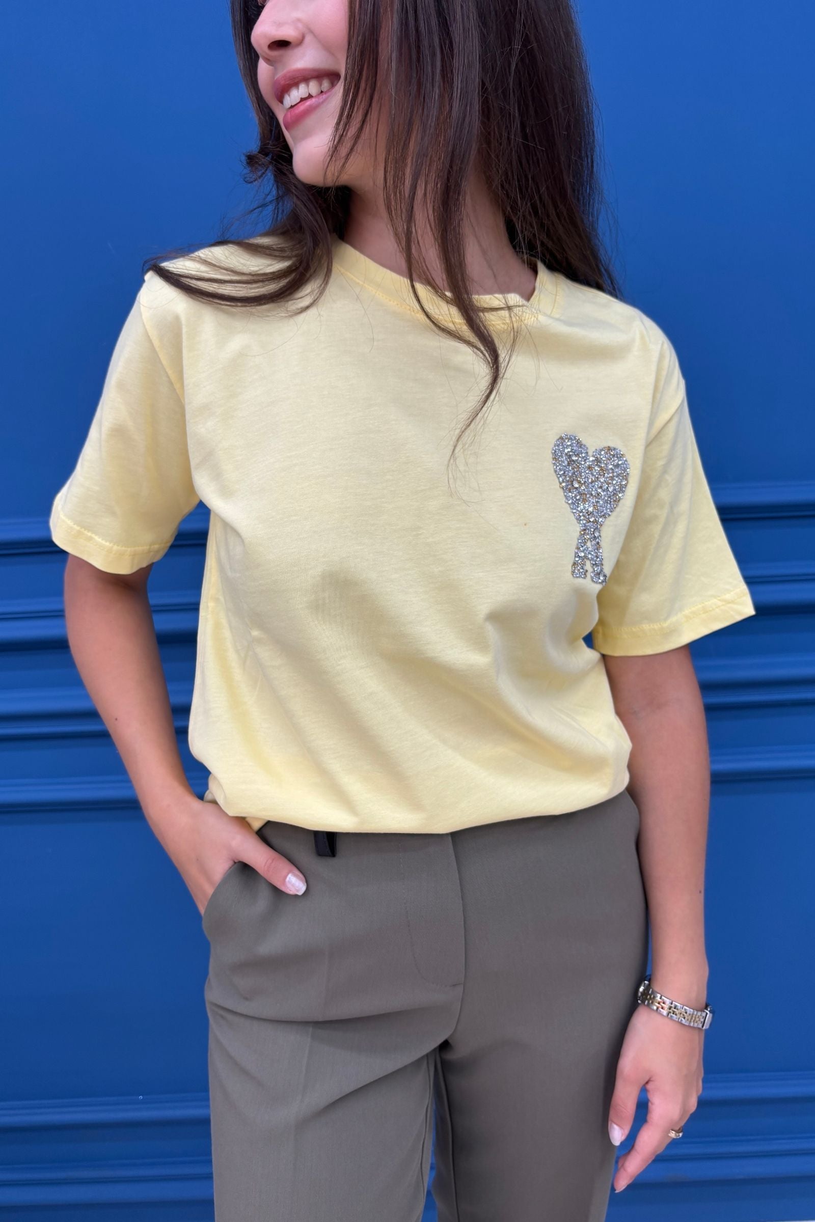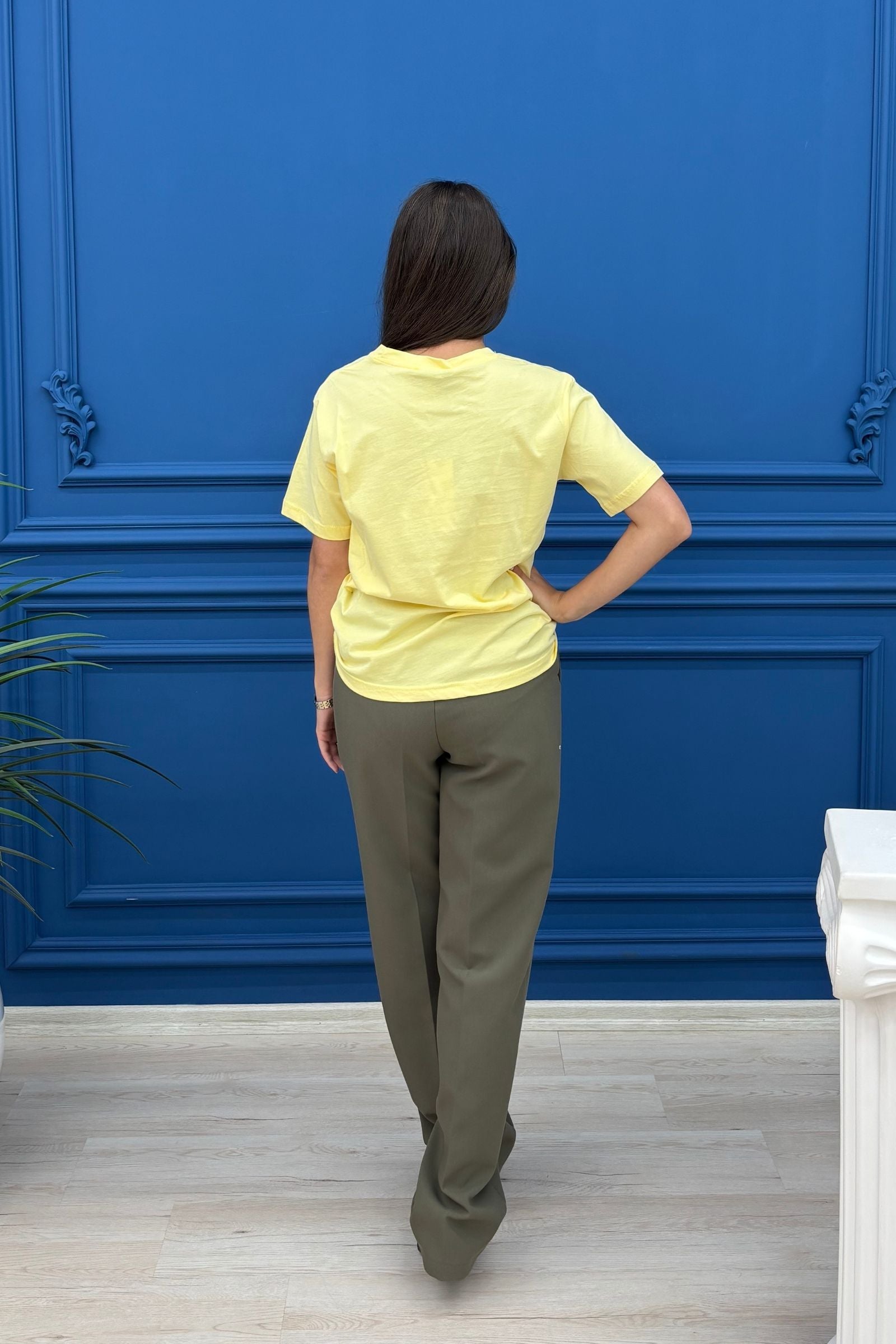 👕 Üst (Sarı Taş Detaylı T-shirt) – Beden Tablosu